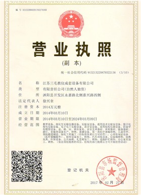 江蘇三毛教儀成套設(shè)備有限公司是一家集設(shè)計、生產(chǎn)、銷售、售后為一體的大型制造企業(yè)。坐落于風(fēng)景秀麗的花木之鄉(xiāng)、全國經(jīng)濟(jì)百強縣、國家級經(jīng)濟(jì)開發(fā)區(qū)沭陽縣永嘉路。